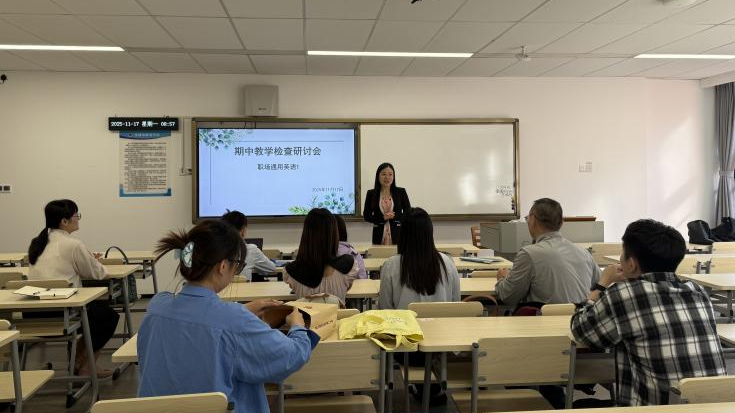 11 月 17 日,大学英语二教研室在第九教学楼 310、312 教室同步开展《职场通用英语 I》公开观摩课与教学研讨会。