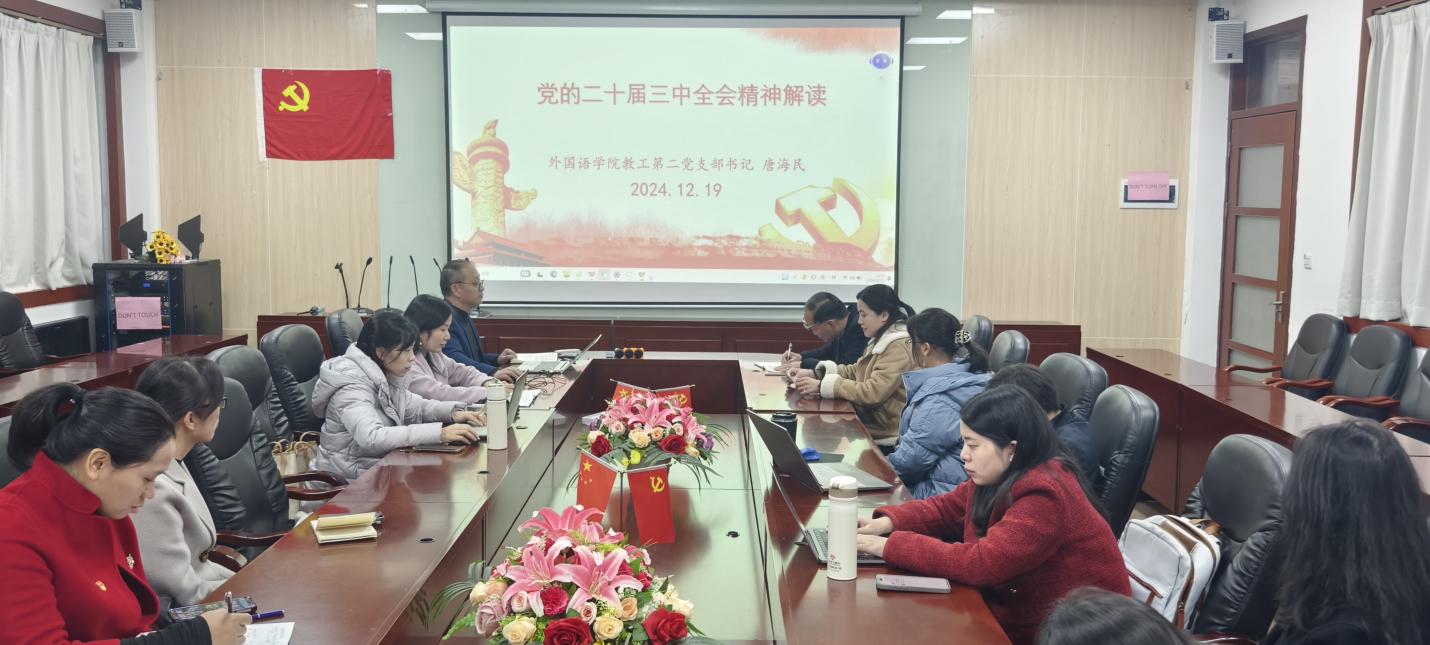 12月19日中午第二行政楼308室,KY开元集团官网教工第二党支部书记唐海民以“学习党的二十届三中全会精神 进一步全面深化改革、推进中国式现代化”为主题,为支部全体党员讲授学习贯彻党的二十届三中全会精神专题党课,支部全体党员参加。