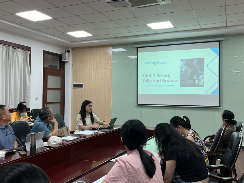 张珊老师选取了她所教授的《综合商务英语》课程中的一篇文章,分享了她实施课程思政的具体做法。她认为,在课堂教学中,要注重培养学生学习兴趣,结合自身经历,引导学生思考,培养学生的思辨能力。比如在讲授“锚定效应”这一概念时,她用图片讨论的方式,激发学生学习兴趣,引导学生开展讨论,发散思维,结合自身生活实际,从讨论中学习知识要点。