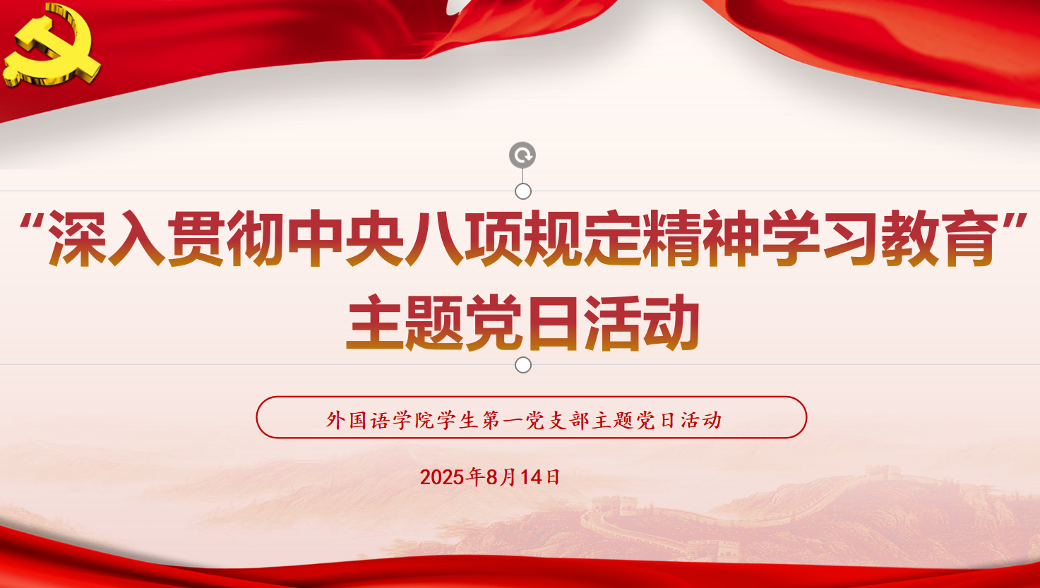 为扎实推进深入贯彻中央八项规定精神学习教育,进一步强化纪律作风建设,KY开元集团官网学生第一党支部于8月14日晚20:00在腾讯会议线上集中开展主题为“深入贯彻中央八项规定精神学习教育”的主题党日活动,支部全体党员参加本次线上党日活动,王胤凯同志担任本次党日活动主讲人。