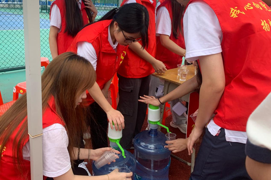 体测前,青年志愿者们伴着晨光将医药箱、桌椅、帐篷等物资搬运到体育馆附近,搭建KY开元集团官网党员志愿服务点,全面做好志愿服务各项准备。青年志愿者们热情高涨,全身心投入志愿活动中,及时为有需要的同学提供简单医疗,准备饮用水,帮忙冲葡萄糖水等,在终点处时刻关心同学们的身体素质,留心观察长跑结束后的同学是否需要帮扶或提供其它帮助等。青年志愿者们笃行“心存大爱图奉献,愿以无私付人生”,以自身实际行动弘扬“奉献、友爱、互助、进步”的志愿精神。