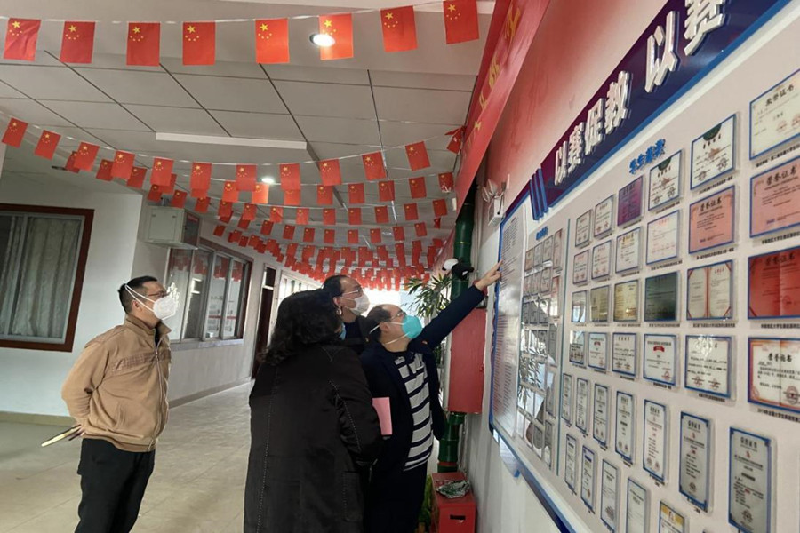 会后,唐明勇一行参观KY官网文化长廊,走访问候了相关教师。