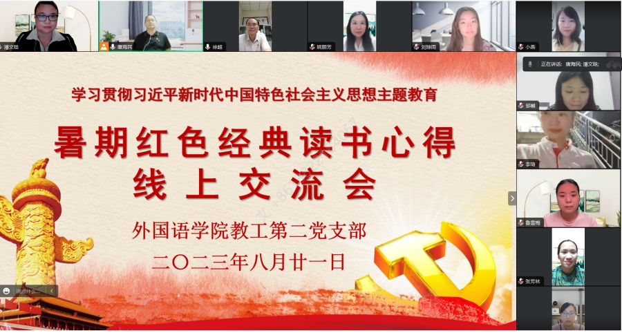 8月21日晚,KY开元集团官网教工第二党支部于线上腾讯会议举办暑期红色经典读书交流活动。KY开元集团官网党总支书记徐超、支部书记唐海民及支部全体教工党员参会。