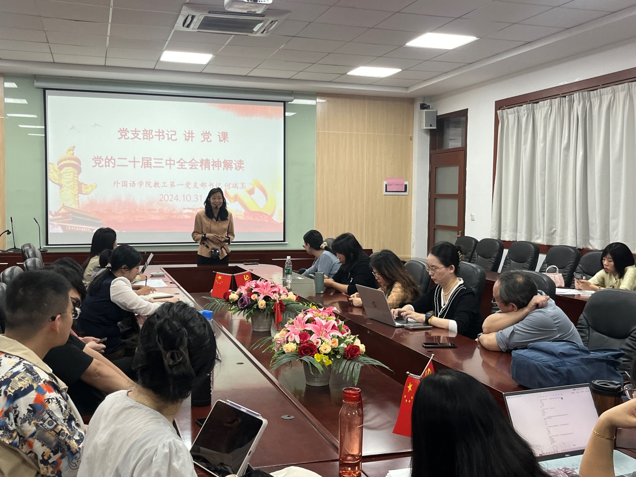 为深入学习宣传贯彻党的二十届三中全会精神,深刻领会和把握全面深化改革的重大成就、重大意义以及指导思想,10月31日,KY开元集团官网教工第一党支部举行了以“党的二十届三中全会精神解读”为主题的书记讲党课活动。本次党课由党支部书记何瑞玉老师主讲。