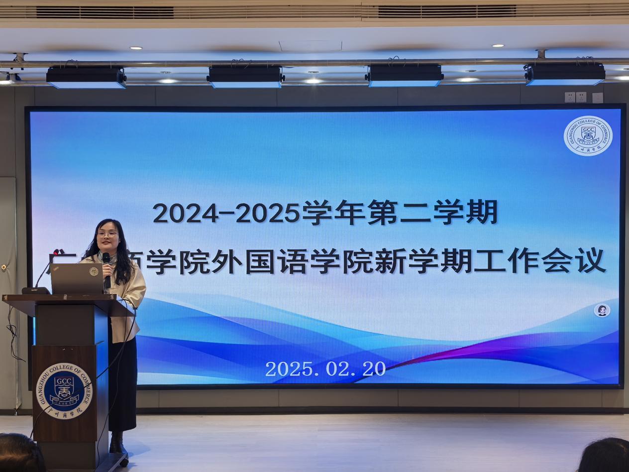 郭遂红院长对2024年学院的各项工作进行全面总结。郭遂红指出,过去一年学院在党建工作、学生工作、教学工作、科研创新、师资队伍建设、人才培养、外语第二课堂以及校企合作等方面均取得了显著成绩。特别是在科研领域,学院成功申报了多项省部级课题,师资队伍结构进一步优化,校企合作项目稳步推进。同时,学院在各类竞赛中也斩获多项奖项,为学校赢得了荣誉。