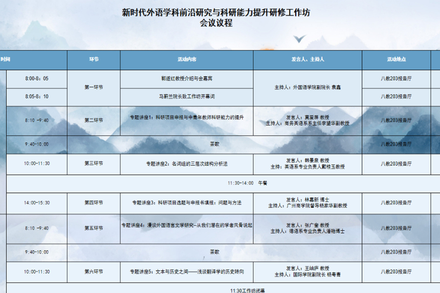 通过本次科研工作坊,两院教师从翻译学、文学、语言学等方向领略了科研的魅力,厘清了科研思路,领会了科研方法,为将来进行科研工作打下了扎实的基础。