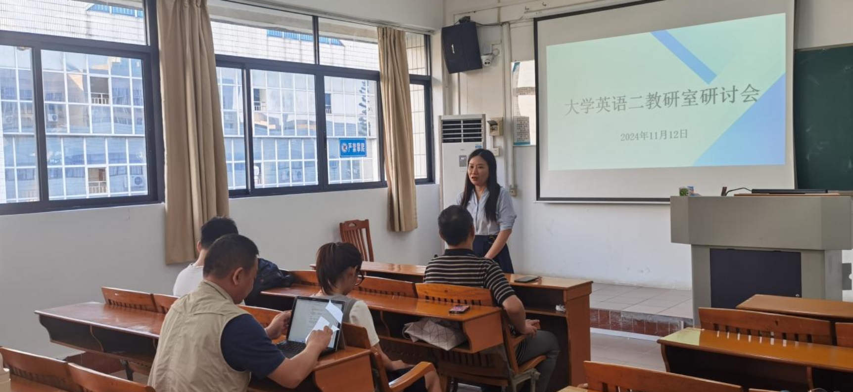 为了进一步提高大学英语课程的教学质量,KY官网大学英语二教研室于11月12日在第五教学楼202教室及402教室成功举办了专门用途英语I的观摩研讨会。本次研讨会旨在通过观摩和集体研讨,促进教师之间的交流与学习,共同探索更有效的教学方法,以提升教师的教学能力。