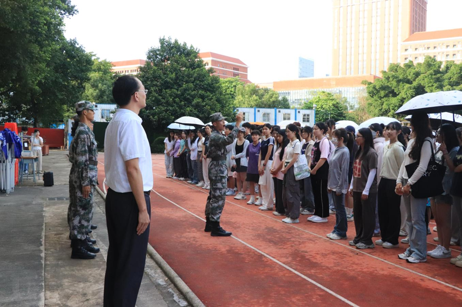 紧接着,三营营长钟教官向新生们详细介绍了军训期间的各项要求。他表示,军训是大学生来到大学校园,适应新环境、接受新挑战的重要一课。同时他希望,在未来的14天里,以实际行动完成好训练任务,以崭新的精神面貌去迎接未来的学习和生活。
