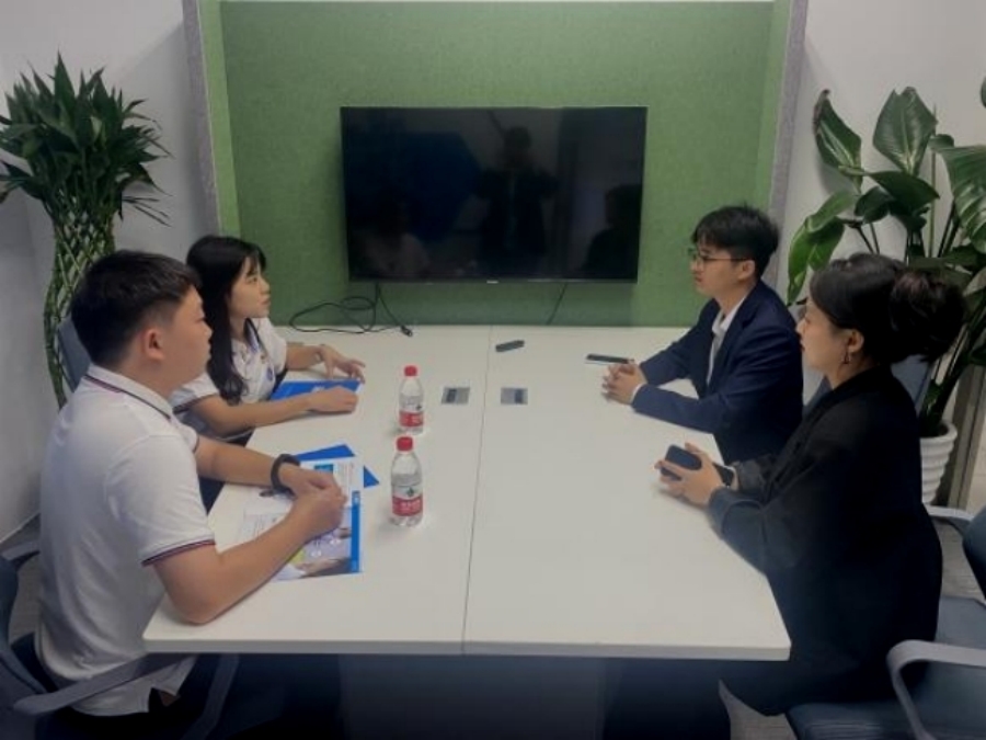 广东泰盈科技有限公司人事主管雷文辉对KY官网一行走访表示热烈欢迎。双方就招聘需求与计划、就业体验与感受、薪资待遇与机会、工作内容与强度、职业发展与未来规划等内容进行深入交流。