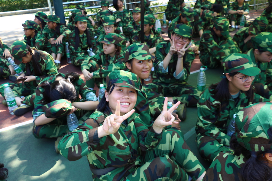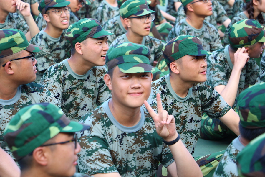 训练场上,迷彩丛中,外院学子以热血沸腾的姿态绽放着最灿烂的笑容。