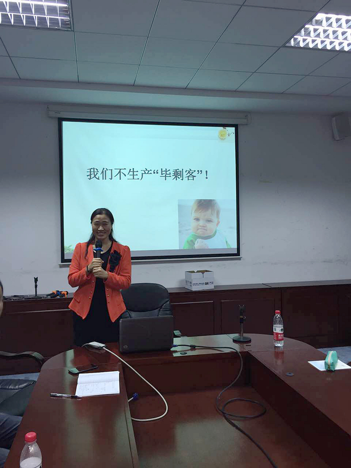 2015级日语专业教学团队组长邓亚晔老师首先陈述了2015级的教学整体方案设计。方案立足与培养既精通日语,并同时适应社会需求的应用型人才,为了使日语专业毕业生在社会上能有更强的竞争力和适应能力,在不改变现有人才培养方案的课程体系基础上,建立专任教师负责制,并导入4+1+2+1的培养体系,以保证各门专业课程教学内容有效衔接,提高教学效率,同时建立并巩固师生间的互信,促进教与学。 通过这次教学改革,日语教师希望2015级的教学能够实现三大目标,即1.人文素养为线;2.三大技能为主;3.能力考试为辅。