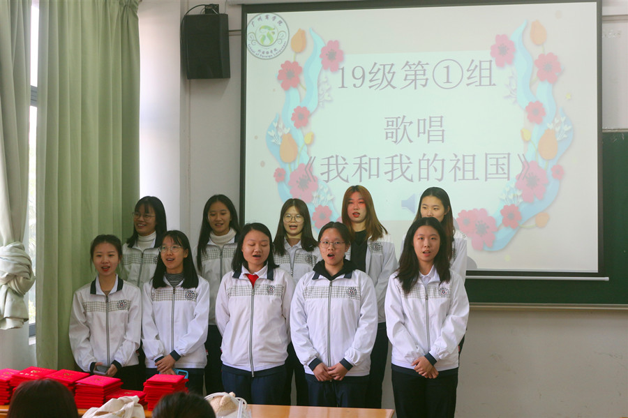 典礼伊始,大家一同回顾了为期一个月的积极分子培训班学习经历。从党课理论学习、经典阅读书目读书活动到深入学习《习近平谈治国理政》第三卷重要讲话精神,全体学员都非常认真地学习且取得了良好的学习效果。在本次结业典礼上,学员们还准备了精彩的汇报表演,展现其学习成果。汇报表演分别为:18级学员代表所带来的朗诵作品《祖国啊,我亲爱的祖国》,19级第一组学员代表的歌曲《我和我的祖国》以及19级第二组学员代表的《国家》手语操。学员们用激昂的语调、坚定的眼神、挺拔的身姿以及细腻的手势表演都深深地表达了她们对党和国家的热爱,以及能顺利通过积极分子培训班培训考核,顺利结业的喜悦。