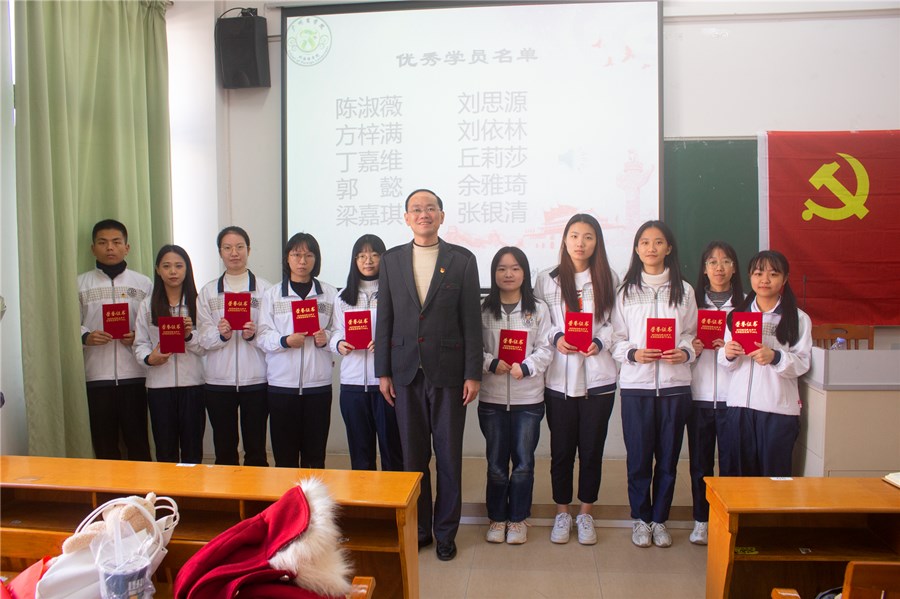 然后,徐超为本期顺利结业的积极分子依次颁发结业证书,并为本期学习班表现优异的10位优秀学员颁发了荣誉证书。并对本期学习班发言致辞。首先,徐超对顺利结业的学员们表示热烈祝贺。其次,徐超书记分别从“四个进一步”,即进一步坚定理想信念,不断提高党性观念;进一步加强理论学习,不断提高党性认识;进一步增强社会实践,不断提高党性锻炼;进一步发挥先锋作用,不断提高党性修养四句话对学员们提出希望。徐超还着重提到学员们应当认真学习《习近平谈治国理政》第三卷以及党的十九届五中全会审核通过的《中共中央关于制定国民经济和社会发展第十四个五年规划和二〇三五年远景目标的建议》,将个人职业规划与国家结合起来。最后,徐超书记以“纸上得来终觉浅”,实践才能出真知,实践才能出智慧对学员们提出建议,希望学员们能够努力在理论修养,在学习工作生活,在人际关系,在为学校学院的各项工作建设过程中发挥其应有的作用,争取早日成为中国共产党的一员,为党、为国家建设贡献自己的青春力量。