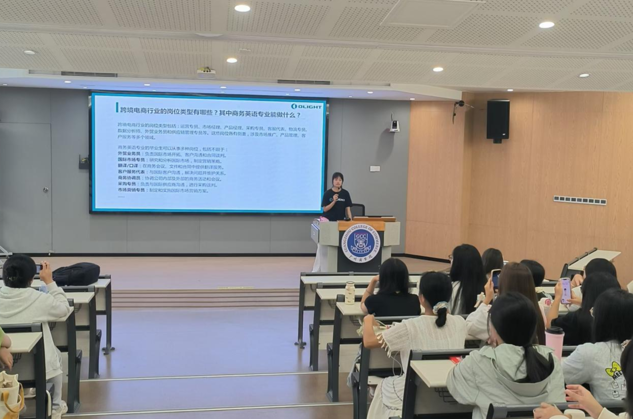成志英则分享了他在跨境电商领域的一些成功案例和心得体会。他强调,在跨境电商行业中,持续学习和创新是非常重要的。他鼓励新生们要勇于尝试新事物,不断提升自己的专业素养和综合能力,以适应行业发展的需求。