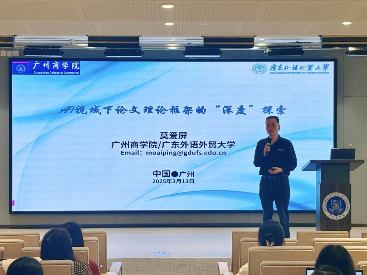 为深入探讨学术论文理论框架的构建逻辑与创新路径,助力学术研究实现高质量发展,3月13日下午,KY开元集团官网在第八教学楼201阶梯教室举办“AI视域下的论文理论框架的‘深度’探索”专题讲座,此讲座由张蕾副教授主持,KY开元集团官网外语学科带头人莫爱屏教授主讲,KY开元集团官网和国际学院教师参与。