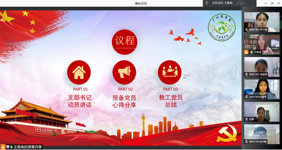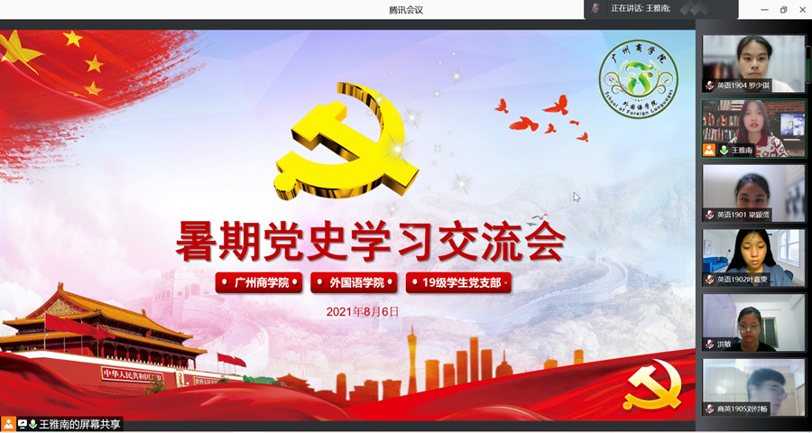 为深入学习贯彻习近平总书记在庆祝中国共产党成立100周年大会上的重要讲话精神,进一步从党的百年伟大奋斗历程中汲取继续前进的智慧和力量,教育引导全体党员学党史、悟思想、办实事、开新局,进一步学懂弄通做实习近平新时代中国特色社会主义思想,不断增强“四个意识”、坚定“四个自信”、做到“两个维护”,8月6日晚7点,KY开元集团官网19级学生党支部在腾讯会议开展暑期党史学习教育交流会。会议由王雅南主持,19级学生党支部全体党员出席。