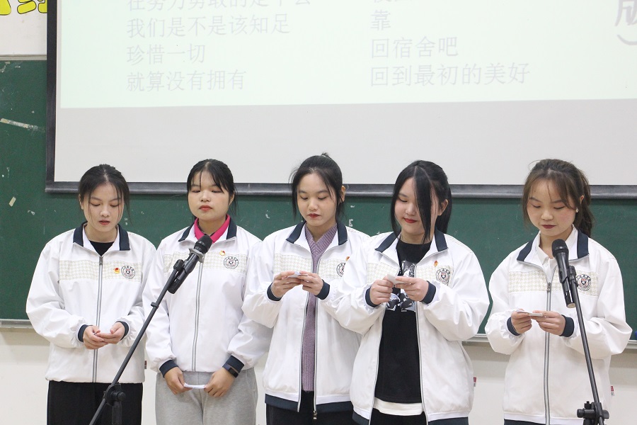 刘翠云同学则从宿舍成员开始介绍,轻松欢快的宿舍氛围是她们进行创作的动力;公约分为学习篇和生活篇,面面俱到,押韵又富有趣味的公约更是让人眼前一亮。