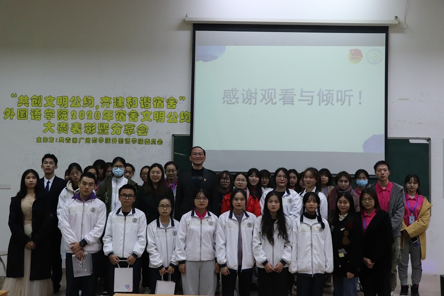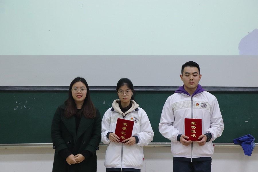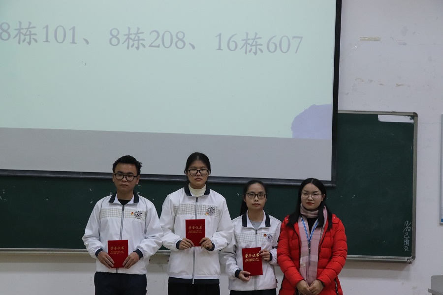 由团委副书记姚焕雯宣读《关于共青团KY开元集团官网委员会表彰2020年宿舍文明公约大赛获奖宿舍的表彰决定》。徐超书记、赖雯慧老师、樊丽梅老师和姚焕雯副书记对获奖宿舍代表进行颁奖。