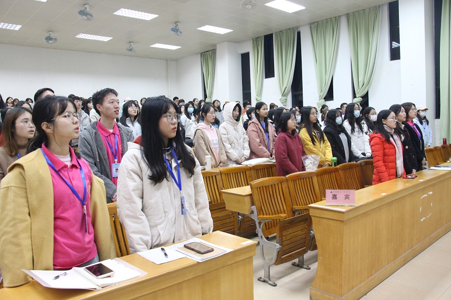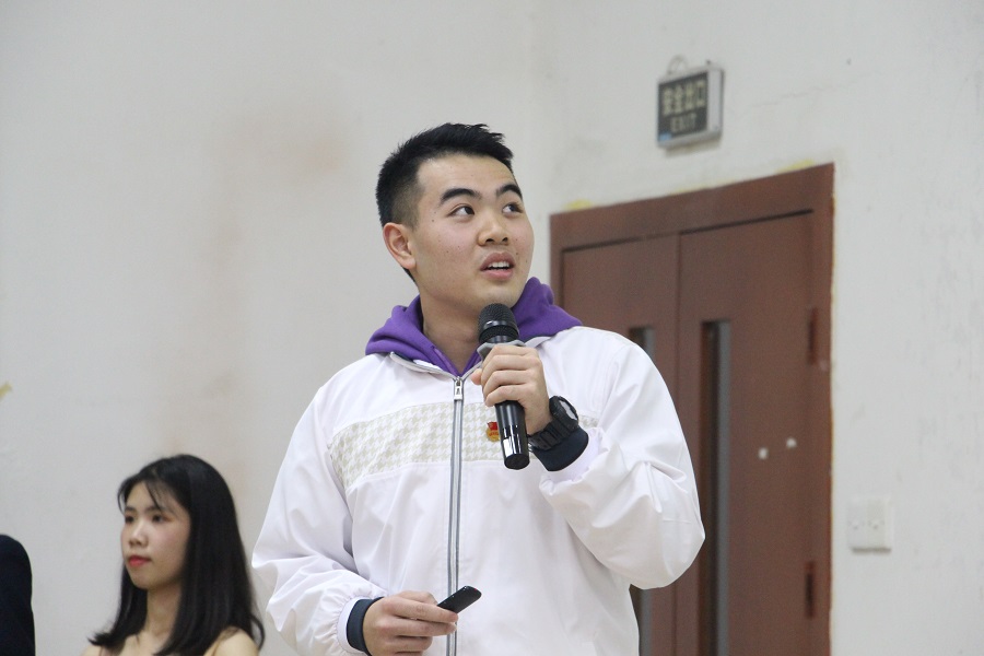 活动在热烈激昂的团歌中拉开帷幕。团委实践部副部长黄颖茵从活动目的、活动筹备、活动成果和反思展望四个方面为我们详解介绍了此次活动。通过她的介绍,让我们进一步了解此次宿舍文明公约大赛活动的内容和开展形式,并引发同学们对脱颖而出的优秀宿舍文明公约的期待。