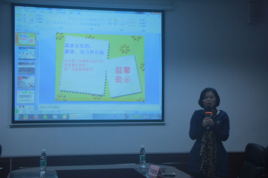 邓媛媛就“大学该怎么过”这一主题从“学习、生活、职业规划”三方面展开讲座,与同学们分享了自己大学人生。她认为大学只是另外一场旅途的起点,同学们要先为自己找一个目标。在学习上,她鼓励学会安排时间,培养学习兴趣,学会自学;在生活上,她鼓励同学们应形成独立的人格,不过分依赖他人,尝试着思考自我;在职业规划上,她提醒学们别总想复制别人的成功,要做一个不一样的自己。此外她还以“成长曲线原则”引导同学们努力做一个“自觉自省、自律自强、懂得自我认同”的大学生,拒绝做一个“自怨自艾、自暴自弃、自我否定”的大学生。在四年大学生活中做好职业规划的行动方案,在奋斗的路上学会舍弃小欲望,成就大梦想。