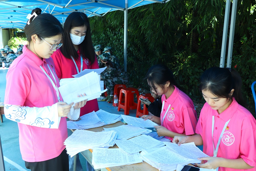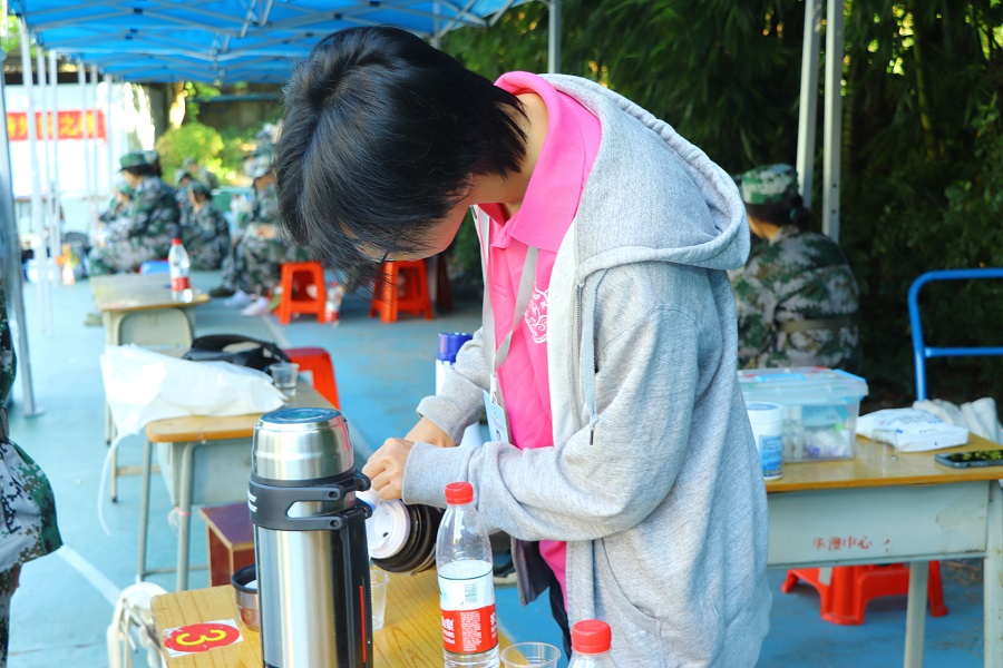 军训开始之际,KY开元集团官网团学骨干团结一心,进行排班轮班,确保第四营的营队每一刻都有团学骨干在守护正在军训的新生们。军训开始时,团学骨干们早已在营地等待着新生们的集合,为他们准备好后勤服务设施以及各类医疗药物,保障军训期间身体不舒服的同学能够及时得到的救护。KY开元集团官网团学骨干身着一身粉衣,穿梭忙碌于“绿色营队”之中,时刻为有需要帮助的同学们提供帮助。军训下训后,团学骨干们会热心关切新生们的军训情况和身体状态,确保能够及时给予新生们足够的关心。