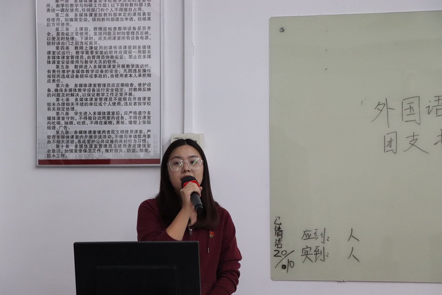 随后,由组织部副部长郭美君为团支书们讲解了基层团组织建设,具体到团组织生活,三会两制一课一册及活力在基层和主题团日设计大赛。而后对基本团务做了一个详细的阐述,向团支书们详细介绍了红册子的填写流程,团组织生活和活力在基层开展流程,以及发展团员和推优工作事宜。