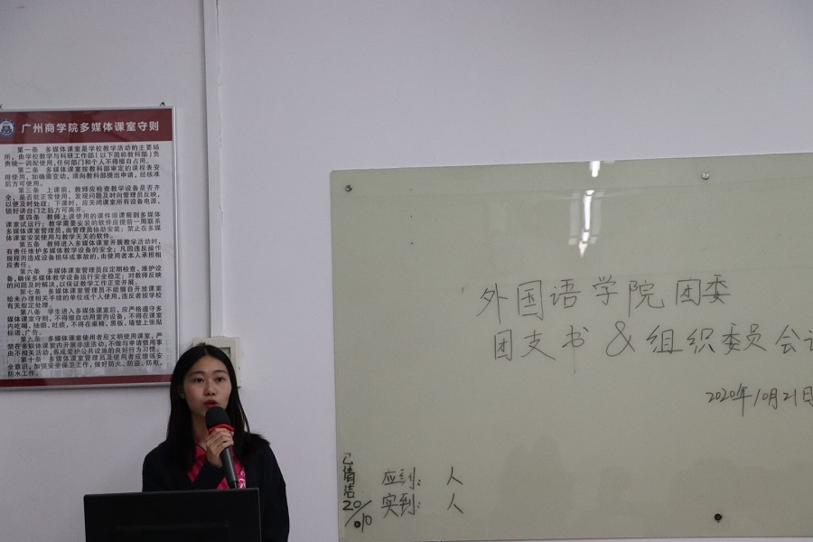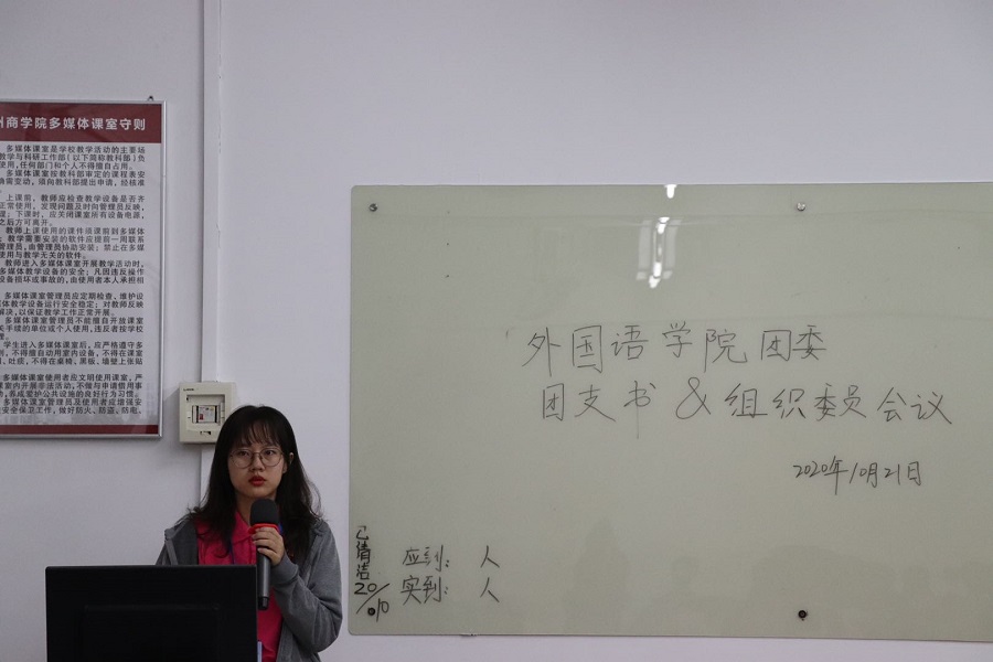 最后,由团委书记赖雯慧做总结发言,首先她对每位团支书和组织委员的努力奉献及付出表示感谢。其次,她强调在工作中:一是要有大局意识,学会平衡好个人利益和集体利益的关系;二是要具备创新意识,作为班委的一份子,应积极鼓励同学们创造锻炼自我的机会,做好思想引领的同时增强班级凝聚力;三是要具备模范意识,发挥好先锋模范作用。团委书记赖雯慧期望每位团支书和组织委员能够在岗位上发光发热,通过班团建设把同学们都凝聚起来,发挥最大的力量。