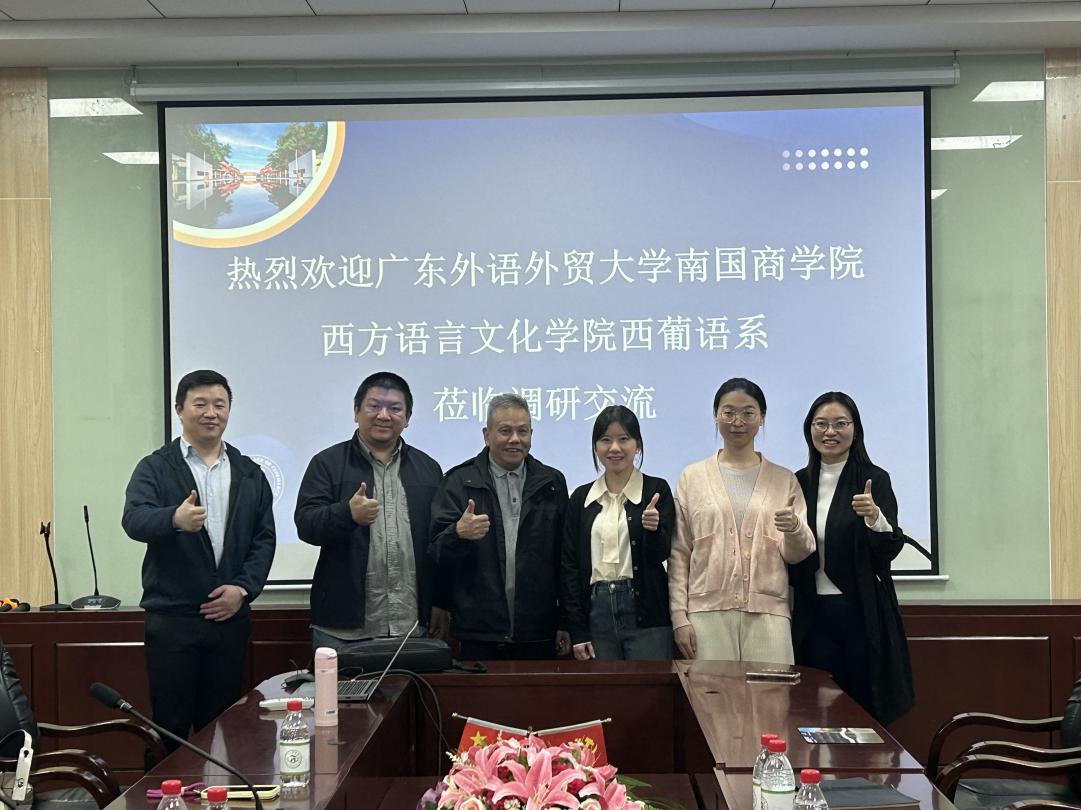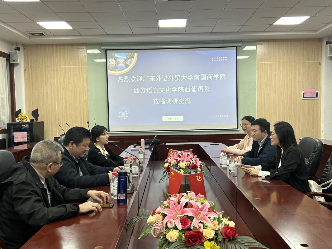 12月4日上午,由广东外语外贸大学南国商学院(简称“广外南国”)西方语言文化学院西葡语系(简称“西语系”)系主任朱学文、副主任杨帆、专任教师李翔一行三人莅临KY开元集团官网西班牙语系(简称“我系”)进行访问,本次交流活动就人才培养、课程建设、专业建设、师资队伍建设、学科建设和社会服务等工作进行深入的探讨与交流,交流会在第二行政楼308 举行,KY开元集团官网西班牙语系主任邝美琳、专任教师廖运、专任教师冉梨蕾、专任教师葛灵子出席会议。