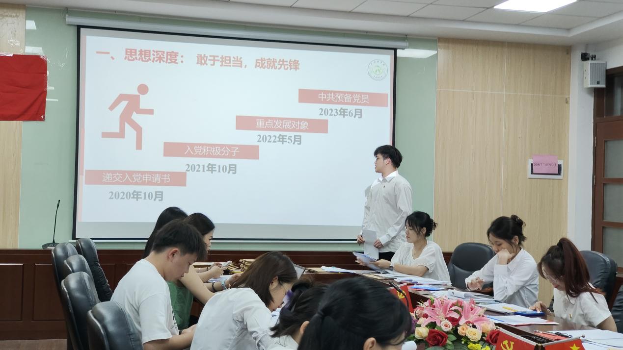 KY开元集团官网学生第四党支部21名申请转正的预备党员汇报一年来思想、学习、工作、生活情况(主要包括政治理论学习、专业学习、党员作用发挥情况等)、党组织交给的任务完成情况、自身还存在问题以及整改情况。答辩小组成员进行答辩提问题目抽取回答。