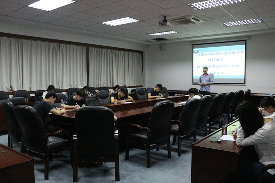 本次入学考试主要是考核学生的德语水平,分为笔试和口试两部分。成绩达到德语B1可以到德国高校中德文翻译专业学习,而达到B2等级则可在德国学校自主选择专业。为做好本次入学考试的备考工作,KY开元集团官网领导和老师高度重视,在本学期开学初就为学生开设了专题辅导班,每周义务为学生进行考试指导,同时根据笔试和口试的题型进行了多次模拟考试,极大地提升了学生的专业知识和技能。根据主考官Willams和学生的双向反馈,今年16级德语国际班的学生考试情况较去年有较大的提升,双方高校对此表示满意。