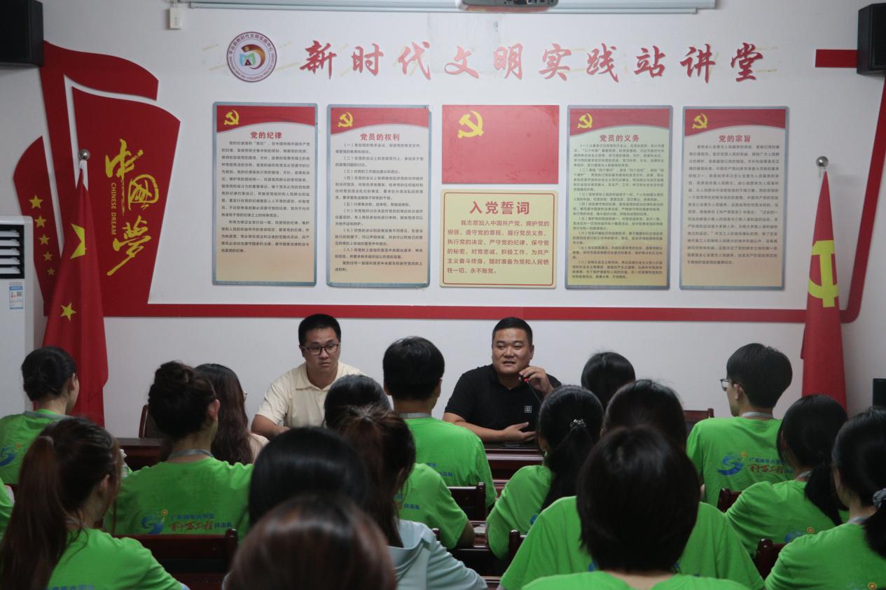 肖剑锋向全体师生细致介绍排下村村情。排下村毗邻江西寻乌,既是“广东东江源第一村”,又是粤东北地区连通赣南的“北大门”。同时,他强调安全问题并介绍后勤保障,为后续KY开元集团官网在村里开展志愿服务项目奠定基础。