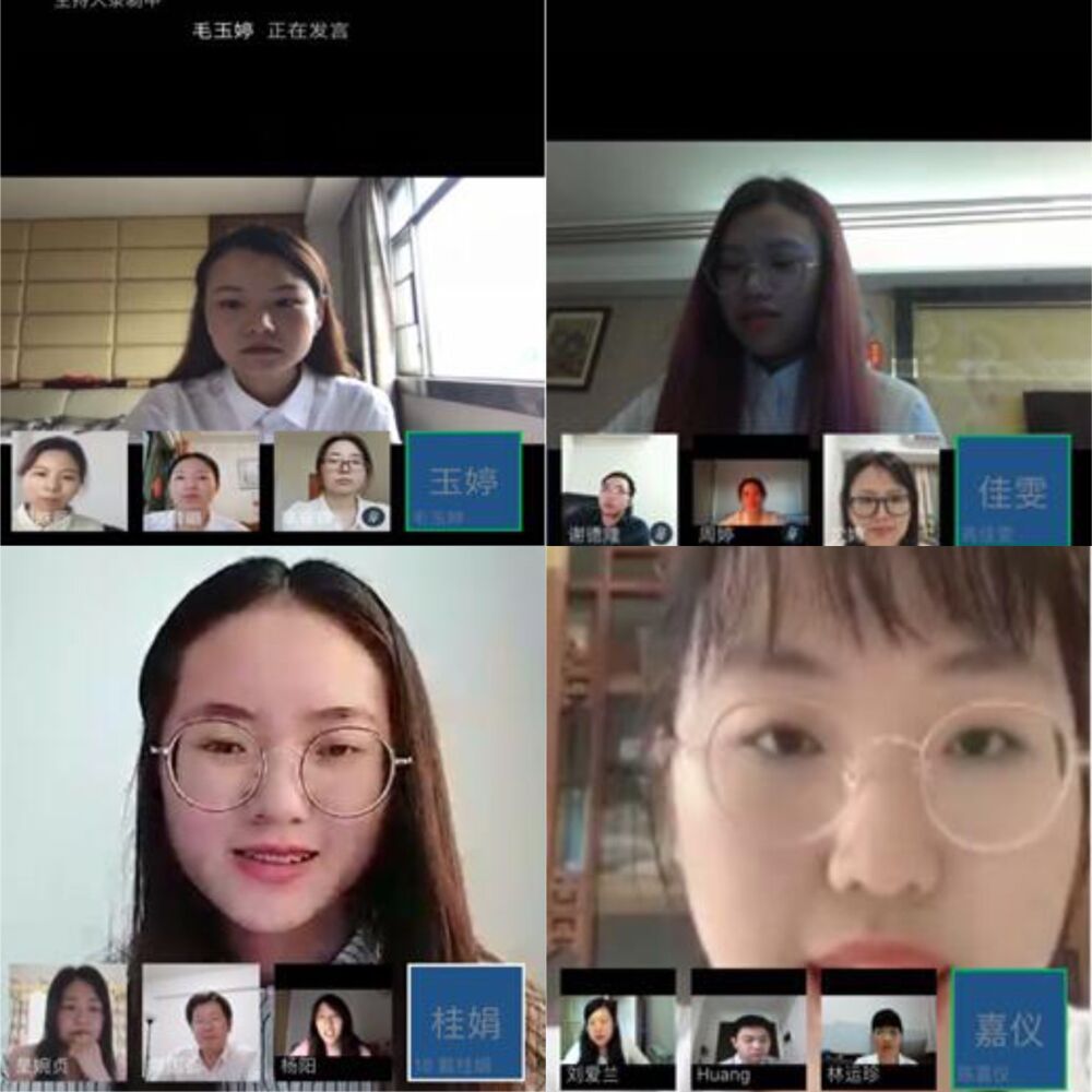 参加本次论文答辩的2016级英语、商务英语、德语、日语四个本科专业700余名学生分布在25个答辩小组之中,每个答辩小组由三名答辩老师和一名答辩秘书组成。5月10日上午8:30,线上答辩正式开始,师生都身着正装进入钉钉答辩会议室。答辩秘书已经提前建立答辩钉钉群,并对师生逐一进行了设备的调试;为方便及时解决问题,我们安排了部分答辩秘书回校进行答辩工作。答辩由秘书维持线上答辩秩序并进行全程录像,依次邀答辩学生进入线上答辩组。马蔚兰院长、袁鑫副院长和徐超书记进入不同的答辩小组进行现场巡视和网上巡查。线上答辩还是按照线下答辩的基本流程,首先由学生陈述论文主要内容,然后答辩老师们就选题思路、论文结构分析等方面进行了提问,同时对同学们的论文进行了点评,就进一步完善提出修改的意见和建议。最后,每组三位答辩老师对毕业论文成绩在线上完成评定。