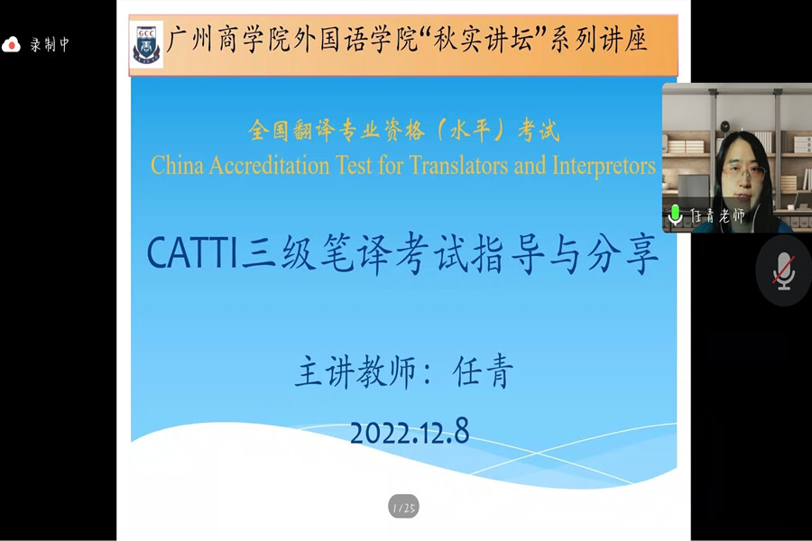 为进一步服务KY官网学子考级考证,开展“我为群众办实事”实践活动,KY官网教工第一党支部联合院学生会于12月8日下午,通过腾讯平台开展2022年“秋实讲坛”系列讲座之CATTI三级笔译分享交流会。本次交流会由KY官网商务英语系“双师双能型”教师任青和KY官网第一党支部组织委员、商务英语系专任教师张珊主讲,教工第一党支部书记何瑞玉、教工第一党支部宣传委员朱渺以及KY官网200多名学生积极参与到此次讲座中。