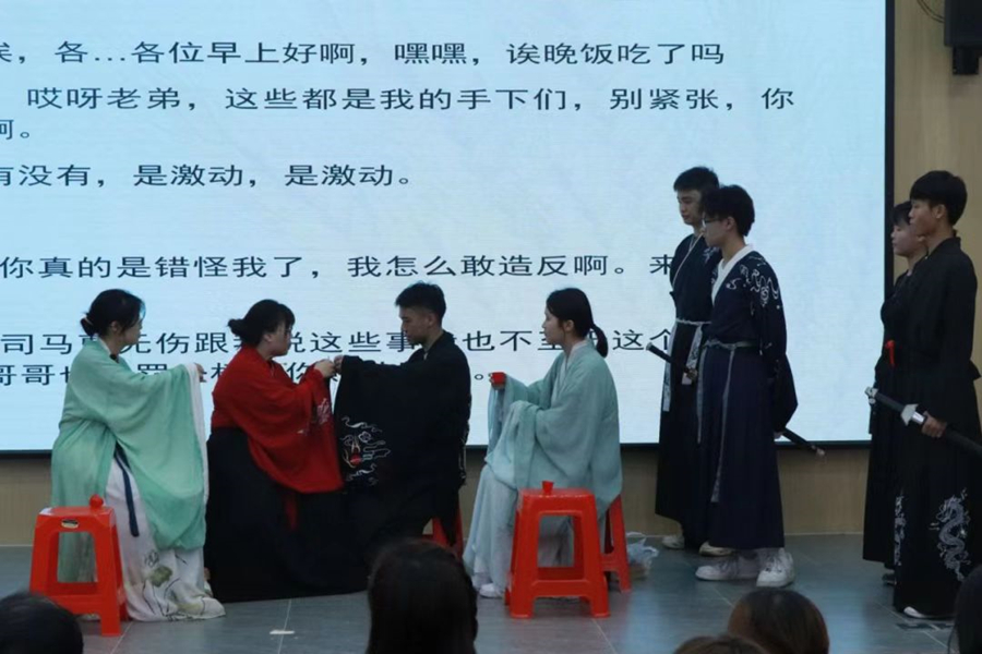 为弘扬中华优秀传统文化,推动中华优秀传统文化走进校园,提高学生语言知识与应用相结合的能力,KY开元集团官网学生会学习部于5月5日19:00在第四教学楼第二报告厅举办“春苏万古卷,薪燃经典魂”第九届外文戏剧大赛决赛。出席本次活动的嘉宾有KY开元集团官网党总支书记徐超、学生会指导老师何沛瑾、各年级辅导员以及团学核心骨干成员。担任此次比赛的评委有西班牙语系主任邝美琳、日语系专任教师赵璇、德语系专任教师刘佳芮、商务英语系专任教师张珊、