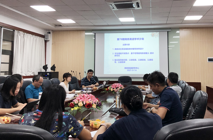 KY官网“商务英语学术沙龙”第78期活动于15日15:50在第二行政楼308会议室举行。专业负责人曾利沙教授针对现有“综合商务英语”教材和教学实践中存在的若干问题,基于“体验-建构融通式”教学模式,提出编写辅助教材的系统性方法和示范性体例。商务英语专业全体教师及部分英语专业教师参加了本次沙龙。