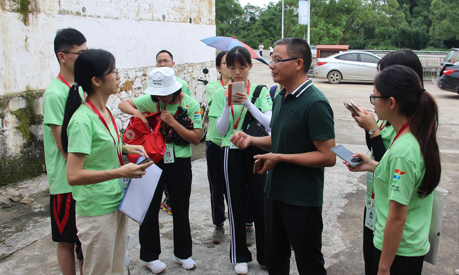 为了解学习文南传统民俗,大力弘扬和培育青年学生的民族精神,KY官网阳光展翅实践团于7月10日上午在文南村委书记黄明景、村委会委员林晓玲、盘龙围主任蓝宗参的带领下前往村中各处参观了解当地民俗。