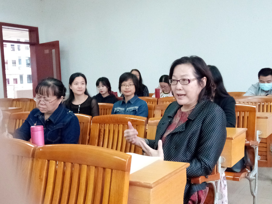 课后,参与观摩课的老师在四教212课室进行了课程研讨,会议由姚丽芳老师主持。参会老师们从教学设计、课程内容及师生互动方面予以了回顾和点评。老师们一致认为,潘老师语言基本功扎实,教学风格活泼,课堂上能驾轻就熟,课堂气氛轻松愉悦。马蔚兰院长肯定了本次研讨课的优点,同时也指出了专门用途英语课程面临的困境:一方面教师要提高非英语类专业学生专业外语水平,另一方面教师授课要兼顾学生的专业知识,教学目标有点庞杂。对此,马院长提供了两条解决途径:一是以满足学生专业需求为驱动,设置以考试为导向的课程设计,如BEC考试课程;二是用专门用途英语课程教授各专业的基础课程,如计算机基础知识,让学生更通俗易懂。最后,袁鑫副院长对本次研讨课进行了总结。他指出,专门用途英语的课时较少,课程设计要吃透教材,把握每次课的教学目的,针对学生的需求提出课堂设计解决的方案,摒除与之无关的设计环节,突出重点,在有限时间空间内达到最大的教学效果。