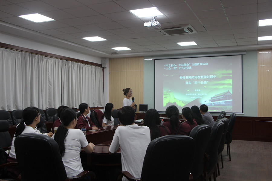 11月7日11点,KY官网教工第一党支部“不忘初心、牢记使命”主题教育“三会一课”之“书记党课”在第二行政楼308进行,该党课以“专任教师如何在教学工作中落实‘四个自信’”为主题,由党支部书记李海燕主讲,KY官网党总支书记徐超莅临指导,13名党员听取了这场讲座,并进行了积极地讨论。
