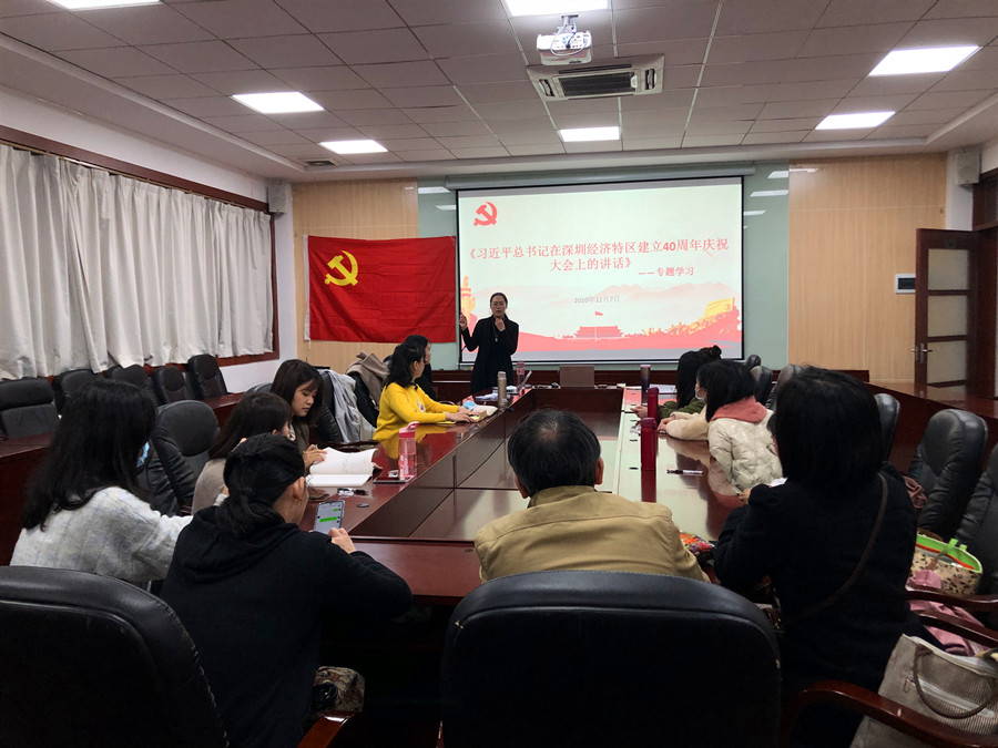 12月8日中午,KY开元集团官网教工第一党支部在第二行政楼308开展“学习习近平总书记出席深圳经济特区建立40周年庆祝大会重要讲话精神”研讨活动,会议由党支部书记李海燕主持,全体党员参加。