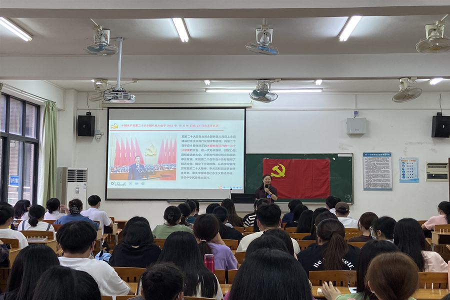 为深入学习宣传贯彻党的二十大精神,扎实推进学习贯彻习近平新时代中国特色社会主义思想主题教育走实走深,5月19日下午,KY开元集团官网党总支在四教209教室组织召开学习宣传贯彻党的二十大精神理论宣讲会。KY开元集团官网党的二十大精神理论宣讲团成员之一、马克思主义学院荣誉院长巴莎教授以《全面建设社会主义现代化国家的政治宣言和行动纲领》为题,对党的二十大报告进行了详细解读。KY开元集团官网党总支组织委员谢清玲主持会议,KY开元集团官网全体学生党员、2023年上半年发展对象培训班学员及部分入党积极分子代表约140人参会。
