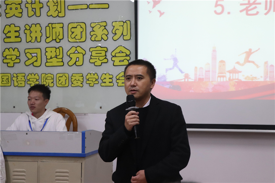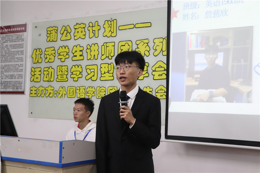 为发挥优秀学生的榜样示范作用,充分调动学生的学习积极性,营造一个良好的学习氛围。KY开元集团官网团委学生会于11月30日晚19:00在三教104举行“蒲公英计划”——优秀学生讲师团系列活动暨学习型分享会英语专场。出席本次活动的嘉宾有:KY开元集团官网学生会指导老师及19级辅导员伍思颖、20级辅导员蔡文蝶、英语系老师杨家华、优秀学生讲师英语1905班詹慈欣及英语1902班叶嘉雯。
