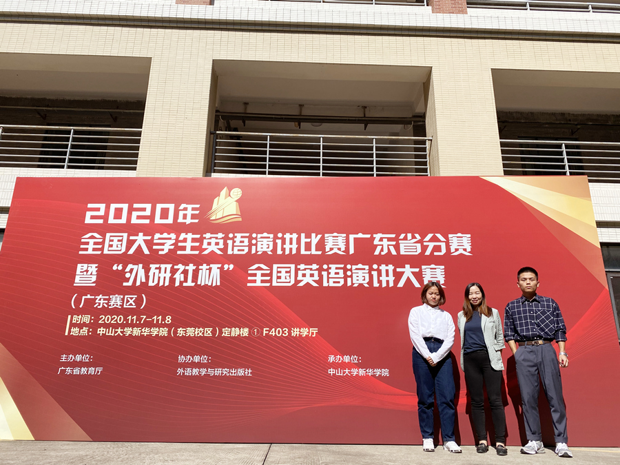 近日,2020年“外研社·国才杯”全国英语写作、阅读、演讲三大赛广东赛区决赛在中山大学新华学院圆满落幕。在领队和指导老师李卓华、指导老师邵春发和陈慧的带领下,KY官网共有9名优秀学生选手一同前往参赛。最终,根据大赛组织公布的比赛结果,KY官网商英1803班的刘思源同学获得了“外研社· 国才杯”全国英语演讲大赛和写作大赛广东赛区的双料三等奖,为学校争得了荣誉。