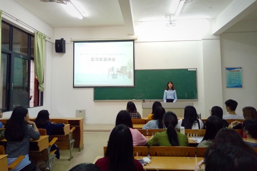 宣讲会邀请了广州市保利锦汉展览有限公司陈卓舒、刘媛以及简镁君等3名负责人到场亲临指导。陈卓舒富有多年主办商贸展会经验,她为在场同学介绍了广州市保利锦汉展览有限公司概况、第39届广州(锦汉)家居用品及礼品展览会筹备情况以及具体岗位工作内容和要求。通过聆听主办方介绍和观看往年展会实习生视频,与会同学大大提升了对于本次实习的兴趣和热情,现场提问气氛热烈、发言踊跃。陈卓舒针对同学们心中的疑惑,耐心地作了解答。