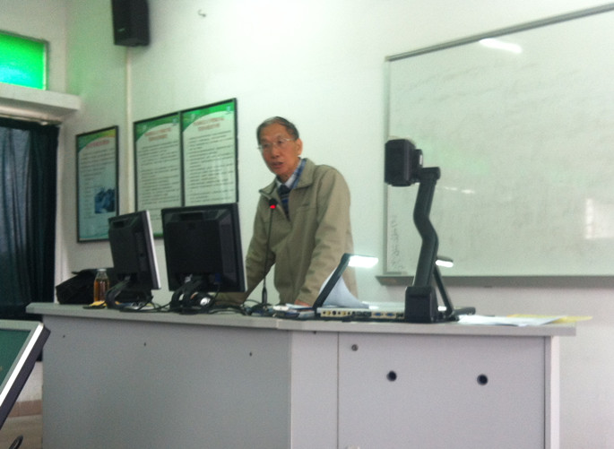 讲座中何广铿教授由大学生自身对大学教师与高中教师的比较引出目前高中英语的全面改革形式,用大量的中学教师的研究实例介绍了高中教改十年后的现状,然后带领大家学习了普通高中英语课程标准基本理念、课程目标、课程结构、课程特点,也就目前大学生在英文写作、阅读等方面所出现的问题让老师进行反思,让在场的老师深受启发。何教授指出,随着高中英语课程标准的实施和教学改革的推进,势必会对大学英语教学产生影响,大学英语老师应该有紧迫感,在授课形式、内容上要积极进行创新,英语教师要成为既能教学又懂研究的专业人士,推动大学英语教学向更好的方向发展。讲座最后,何教授播放一个示范课视频,并与在座的老师进行交流,回答老师们的问题。