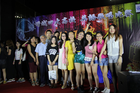 6月11日,外语系主任胡光忠、学生会指导老师黄玉亭、英语老师李卓华一行三十多人代表KY官网前往增城万达广场参加增城四大高校英语歌唱比赛。