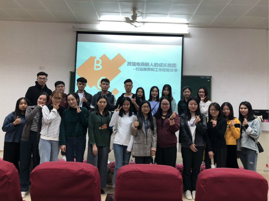 黄玉亭对张惠敏的返校分享表示热烈欢迎,并详细介绍了她的在校经历和工作成就。张惠敏从电商行业分类、跨境电商经营分类和经营模式等方面,生动地介绍了新时代盛行的行业形势、跨境电商的人才需求、行业的工作内容,清晰地展现了现阶段跨境电商的趋势。紧接着,张惠敏通过SWOT模型引导学生开展角色认知练习,根据同学们的练习结果举一反三地分享了正确的职业自我角色认知在职业发展的重要性,以此鼓励同学们学会自我分析、自我规划和自我总结。接着,她从角色转换、工作心态、思考逻辑和时间管理四个方面分享从跨境电商新人到品牌经理成长的心得体会。她以自身的成长经历和工作经验与同学们深入分析了工作中遇到的“疑难杂症”。其中,特别分享了对自己影响深刻的空杯心态和闭环思维。张惠敏将丰富多彩的工作经验、睿智稳重的思维逻辑和积极进取的生活态度深深融合在分享中,赢得了阵阵掌声。会后,张惠敏还通过答疑互动与同学们亲切交流、对同学们提出的问题,细心回答、倾情相授,活动现场气氛其乐融融。