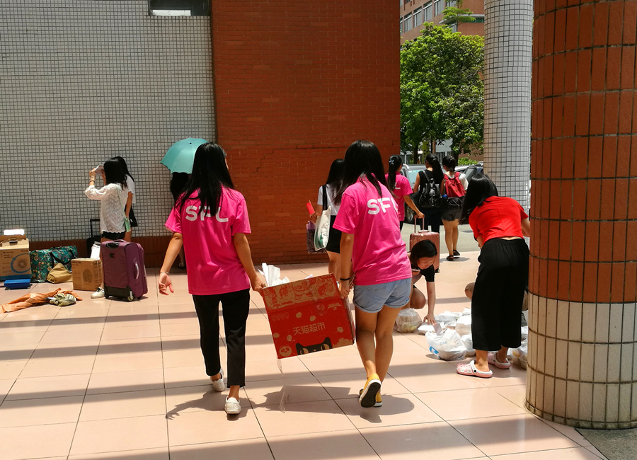 2017年6月24日,在毕业季即将到来之际,作为维护校园安全稳定、创建文明校园的一项重要工作,KY官网对于毕业生离校予以高度重视。针对毕业生文明离校这一主题,KY官网不仅在校内外加强了日常的安全巡逻工作,还组织了一大批的志愿者来帮毕业生们发放毕业资料、一同搬行李并引导家长有序安全地迎接自己的子女。因此,在第二行政楼里、在宿舍楼门口、在每一层宿舍走道内都可以看到忙碌“小粉人儿”的身影—。当被问为什么会自愿加入志愿者服务的行列中来时,他们腼腆地笑着回答到:“当年自己入学的时候就是这些师兄师姐们帮我们搬行李、带我们认识广商的;当他们毕业了,要离校的时候,我们当然也要用实际行动去回报他们。”另一位志愿者还说:“虽然天气很炎热,但是能帮助到师兄师姐们,并且能在最后听到他们对自己说的一声‘谢谢你’的时候,便觉得整个人都充满干劲,能帮到毕业生们,我觉得很快乐,很满足!”