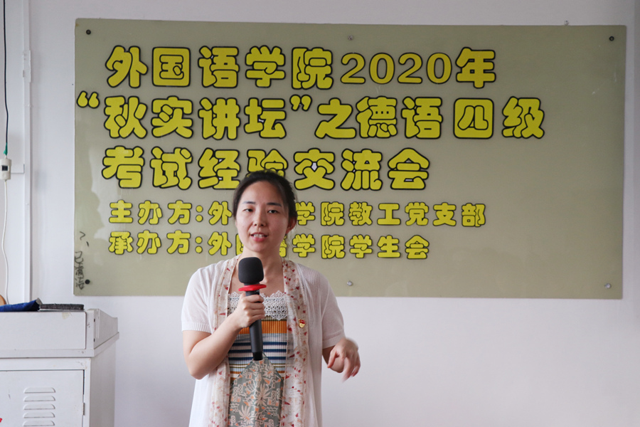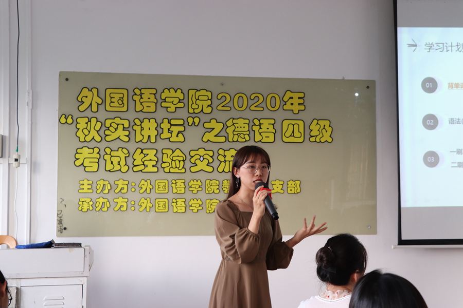 为发挥基层党支部的战斗堡垒作用,增强基层党建工作的活力,KY官网教工党支部及学生会于2020年11月5日下午4点20在第三教学楼305举行KY开元集团官网2020年“秋实讲坛”之德语专业四级考试师生经验交流会。参加本次讲座的有教工党员章睿霖,学生嘉宾李美琪、刘加林以及各年级德语专业同学。