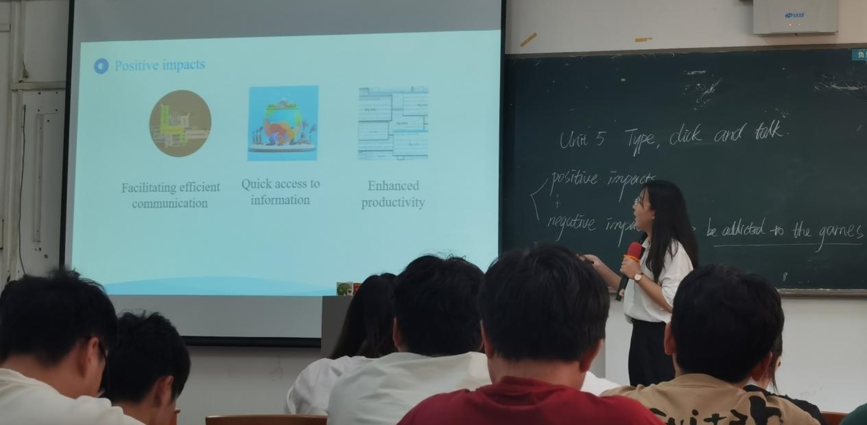 研讨课由大学英语二教研室李梦林老师主讲,内容为“Unit 5 Type, talk and click”。此次研讨课吸引了大学英语二教研室及其他教研室教师前来观摩学习。李梦林老师借助PPT展示与板书讲解相结合的方式,向学生全面阐述了输入设备的相关知识,内容涵盖词汇导入、句子应用以及听力训练等多个方面,并巧妙融入思政元素,引导学生展开讨论。在教学过程中,师生互动良好,课堂氛围活跃,教学内容丰富多元,取得了较为理想的教学效果。