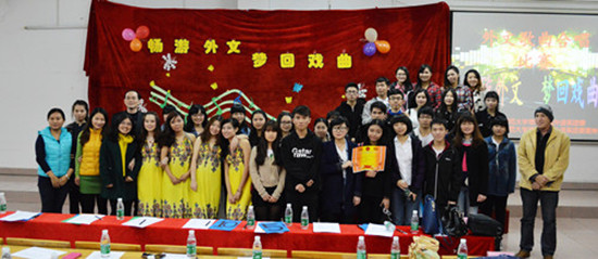 活动中, 8支参赛队伍在灯光闪耀的舞台中激情地演绎着各具特色的外文歌曲。欢快的旋律、动感的歌词、精彩的表演呈现了一场视听觉盛宴。其中身穿孔雀图沙滩长裙的Black Tea队伍深情地演唱了《Schuld war nur der Bossar Nova》,令人难以忘怀。Dream Team队伍全情投入地演唱了《I believe I can fly》,充满活力与激情的表演更是赢得了全场热烈的掌声。紧接着,外语系团委自导自演的“孔雀东南飞”话剧也博得了观众的阵阵喝彩。接下来,戏曲表演加分环节,各参赛队伍淋漓尽致的发挥,充分展现了他们的机智聪慧和丰富的传统文化知识。经过一场角逐,最终,Bleak Tea 队伍荣获一等奖,Dream Team队伍荣获二等奖,Freudbringen荣获三等奖。
